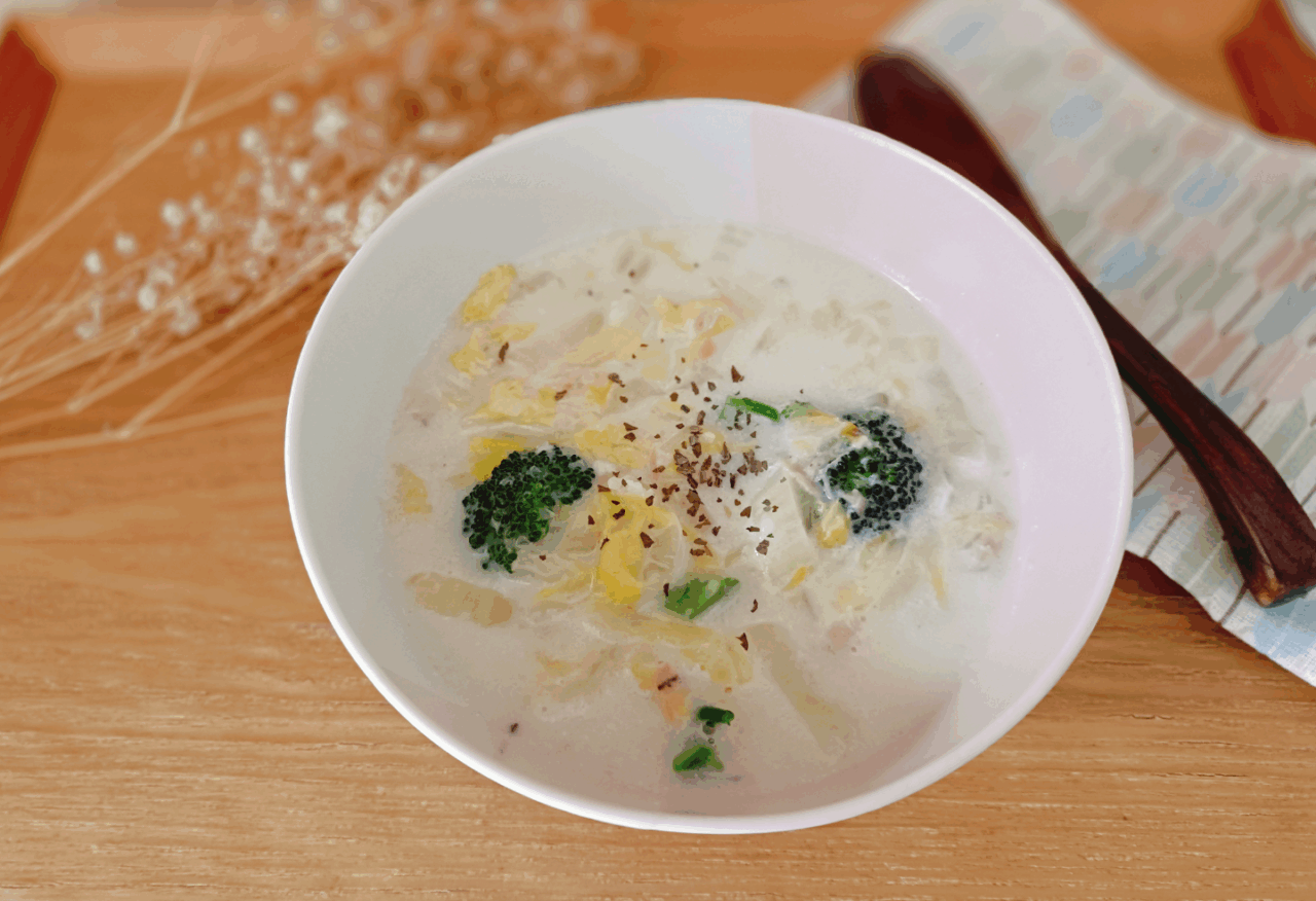 材料(3~4人分) 白菜1/4ツナ缶1缶米粉大さじ2塩麹大さじ2水100㏄牛乳(豆乳)200㏄ 作り方 ①白菜を細切りにカットし、耐熱ボウルに水と塩麹を入れレンチン600w3分 ②白菜がしんなりしたら一旦取り出し米粉を入れ混ぜ牛乳を入れ更にレンチン2~3分 ③トロミが... -