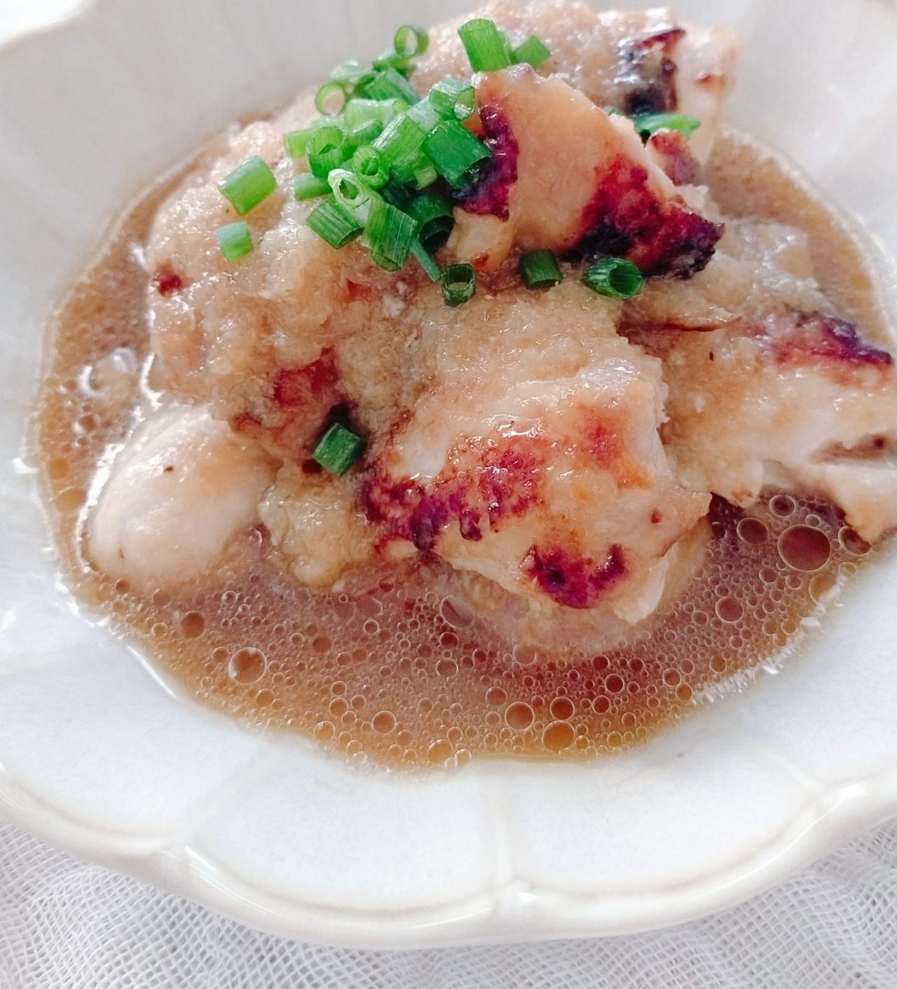 トロ甘~なタレがやみつき♡ 材料(2人分) 鶏肉1枚(約300g)大根約70g片栗粉 大さじ1ーー調味タレーー醤油麹大さじ1.5本みりん大さじ2蜂蜜大さじ1~ 作り方 ①鶏肉をカットし醤油麹半量を揉みこみ、片栗粉をまぶす ②大根をおろして、その中に調味タ...